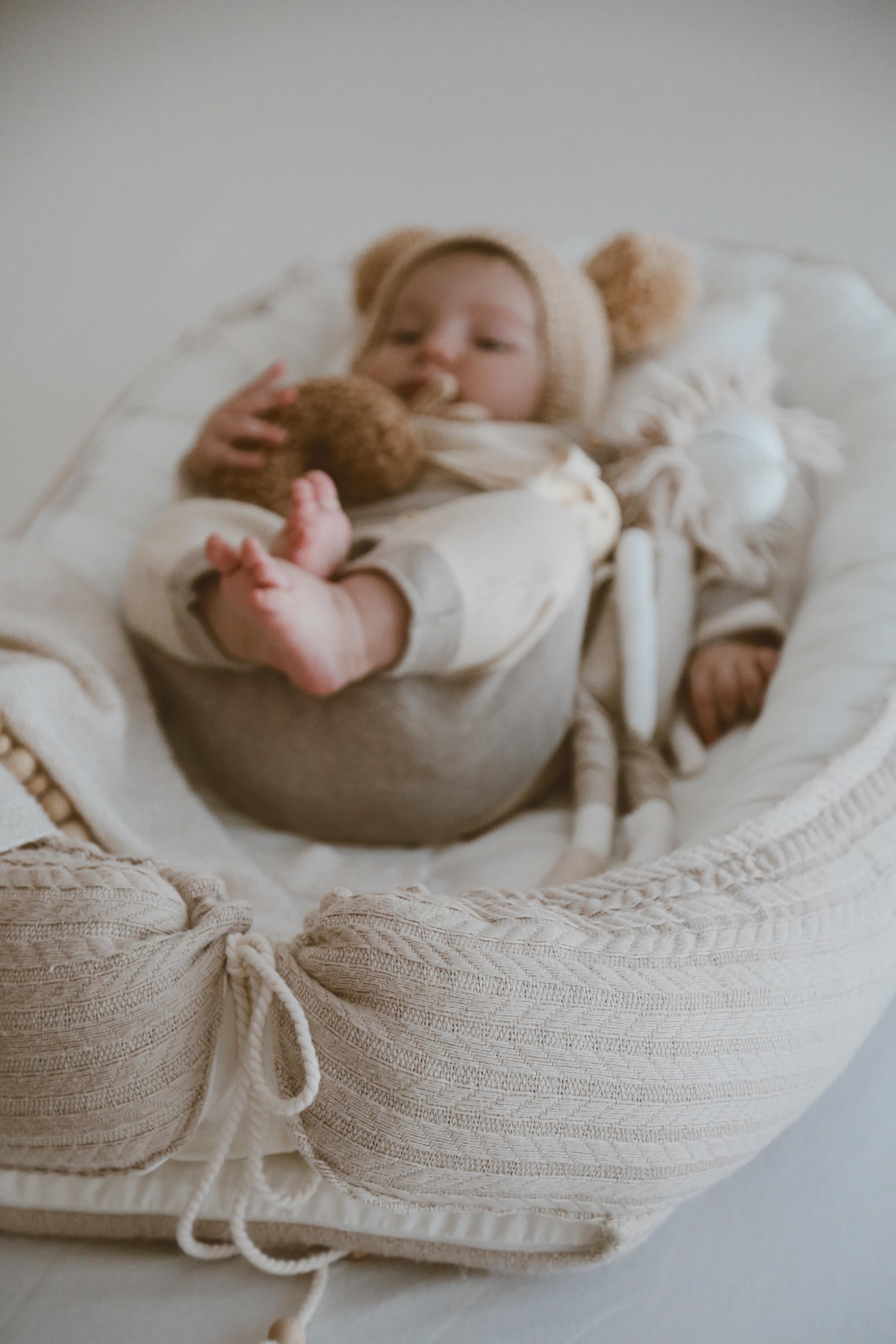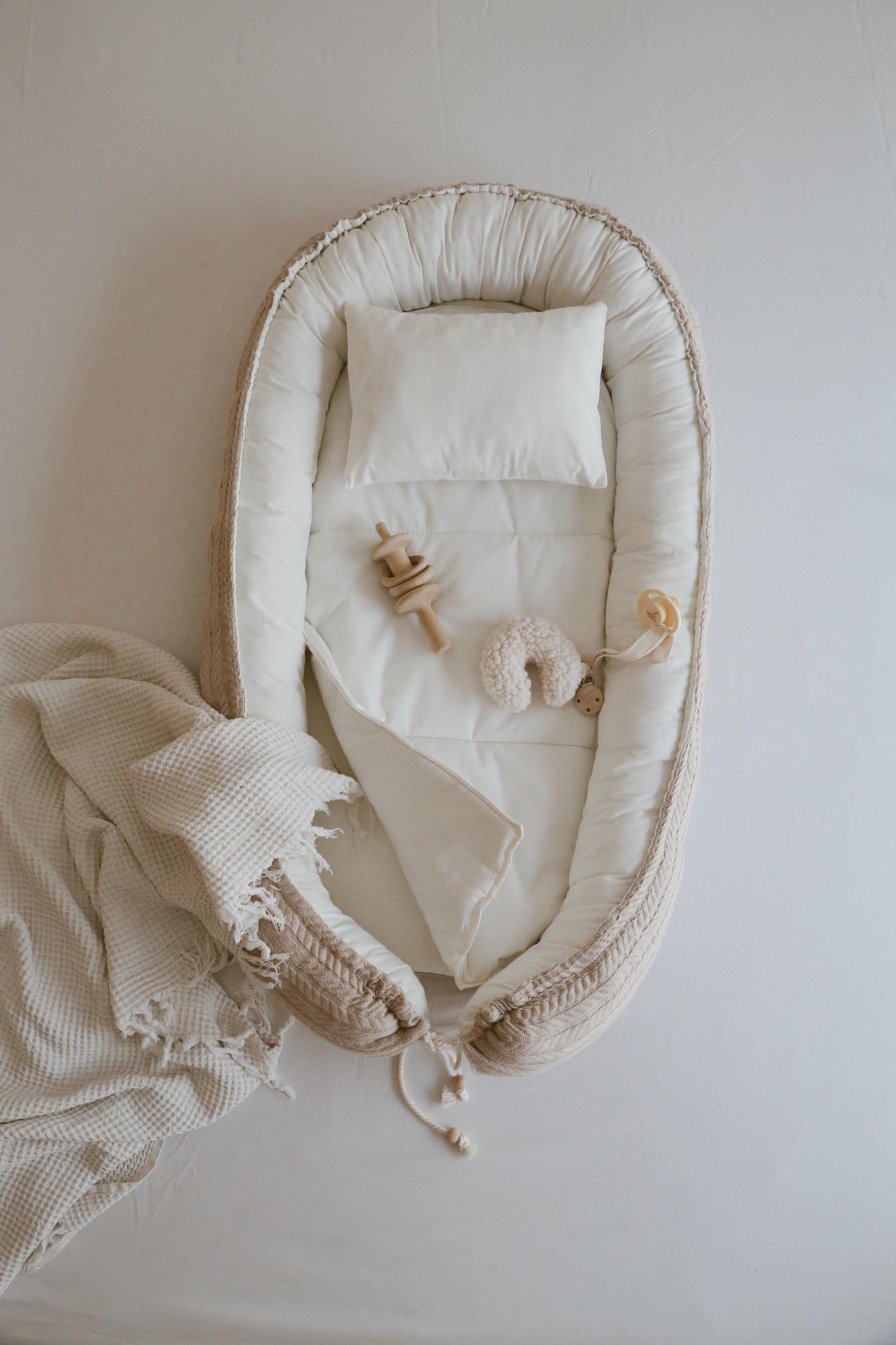 Novo gnezdo pruža bebi udobno i sigurno mesto za odmor od prvih dana života. Izrađeno je od 100% pamuka sa mekanim punjenjem i visokim obrubima, pa stvara osećaj topline i bliskosti.
