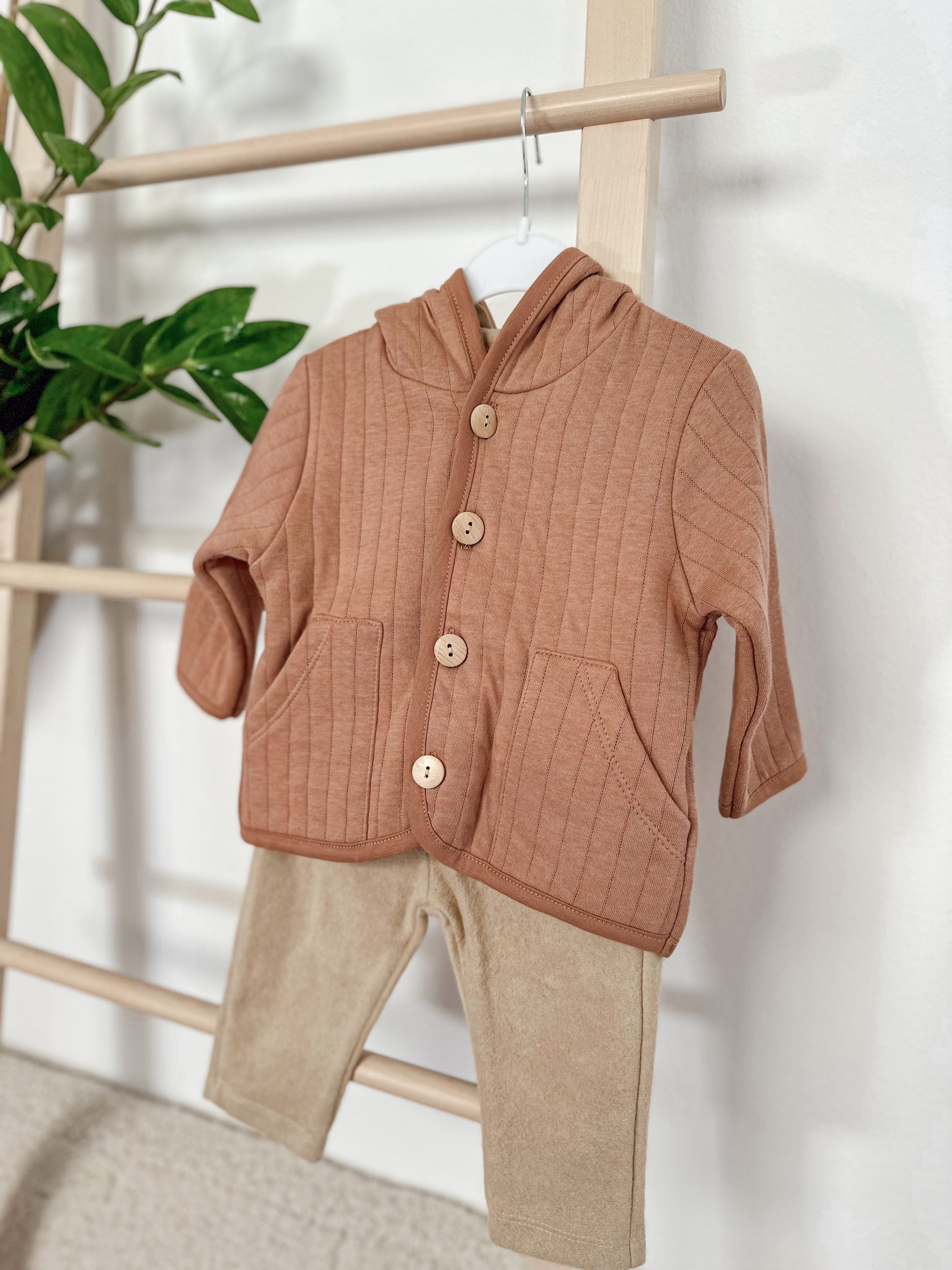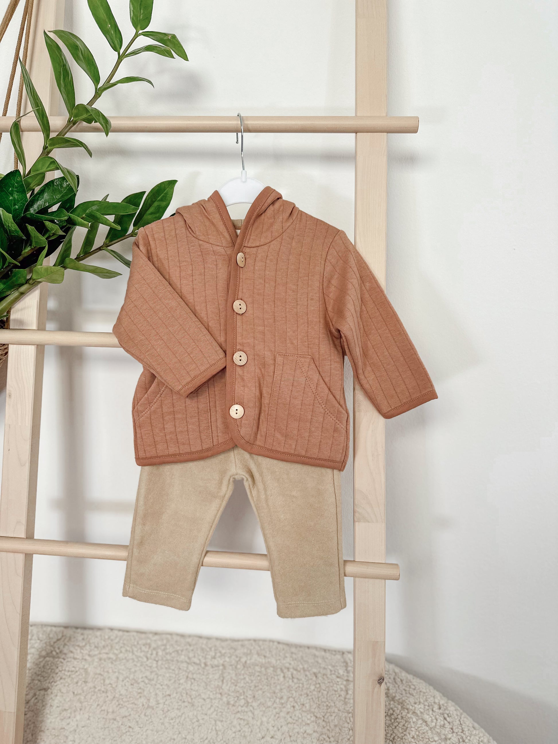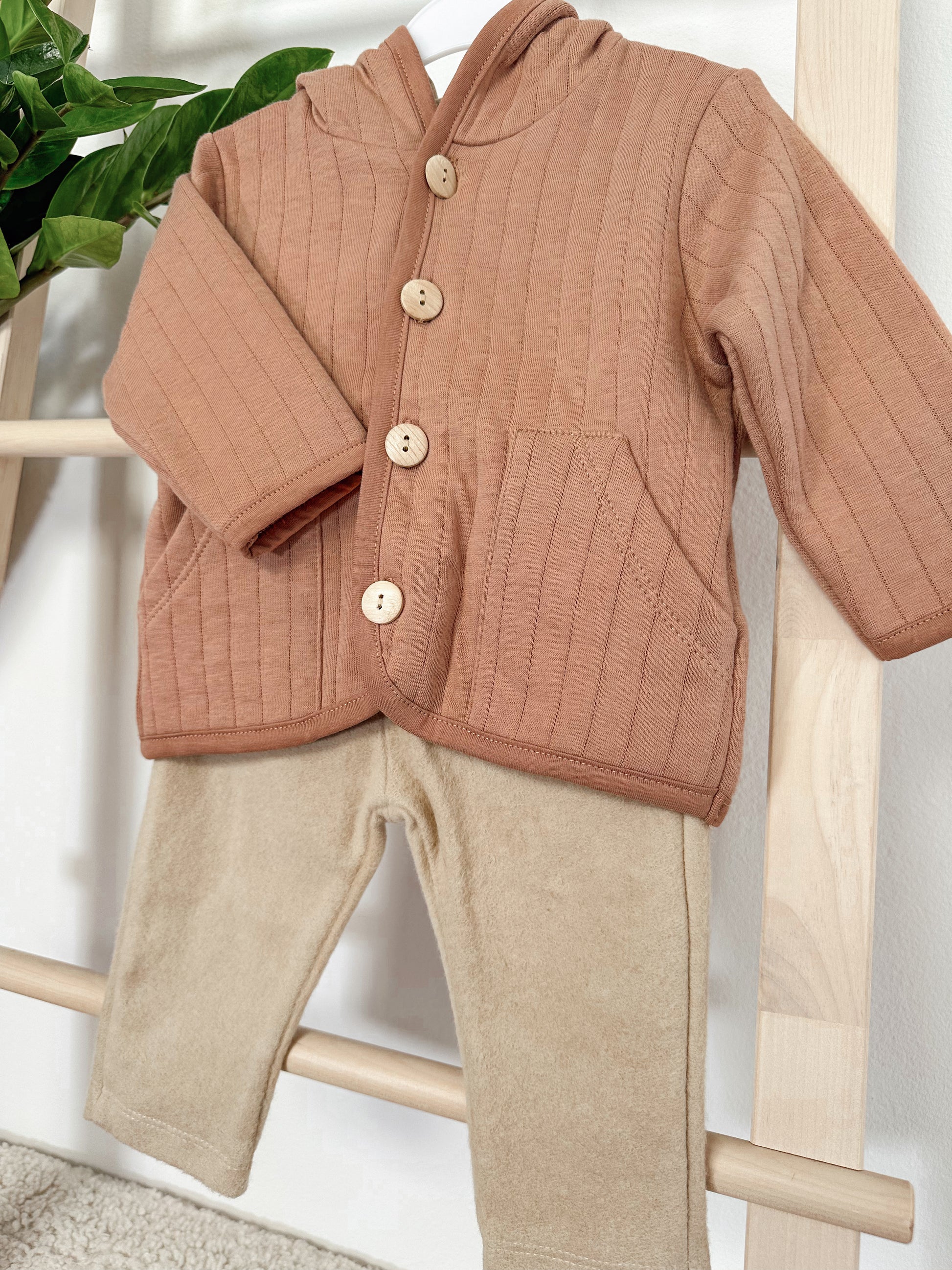 KOMPLET JAKNICA NA DRVENE DUGMIĆE I PANTALONE