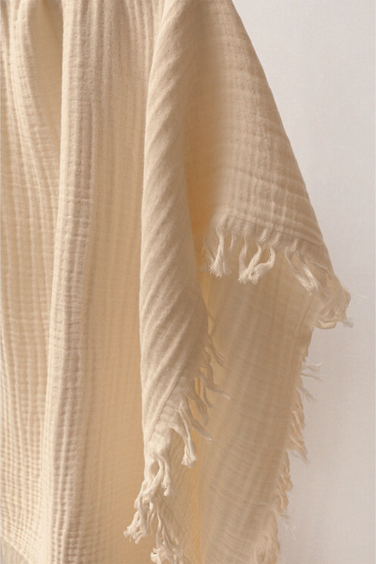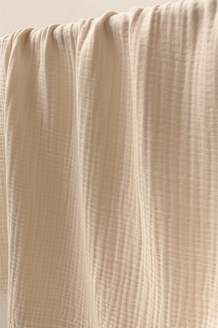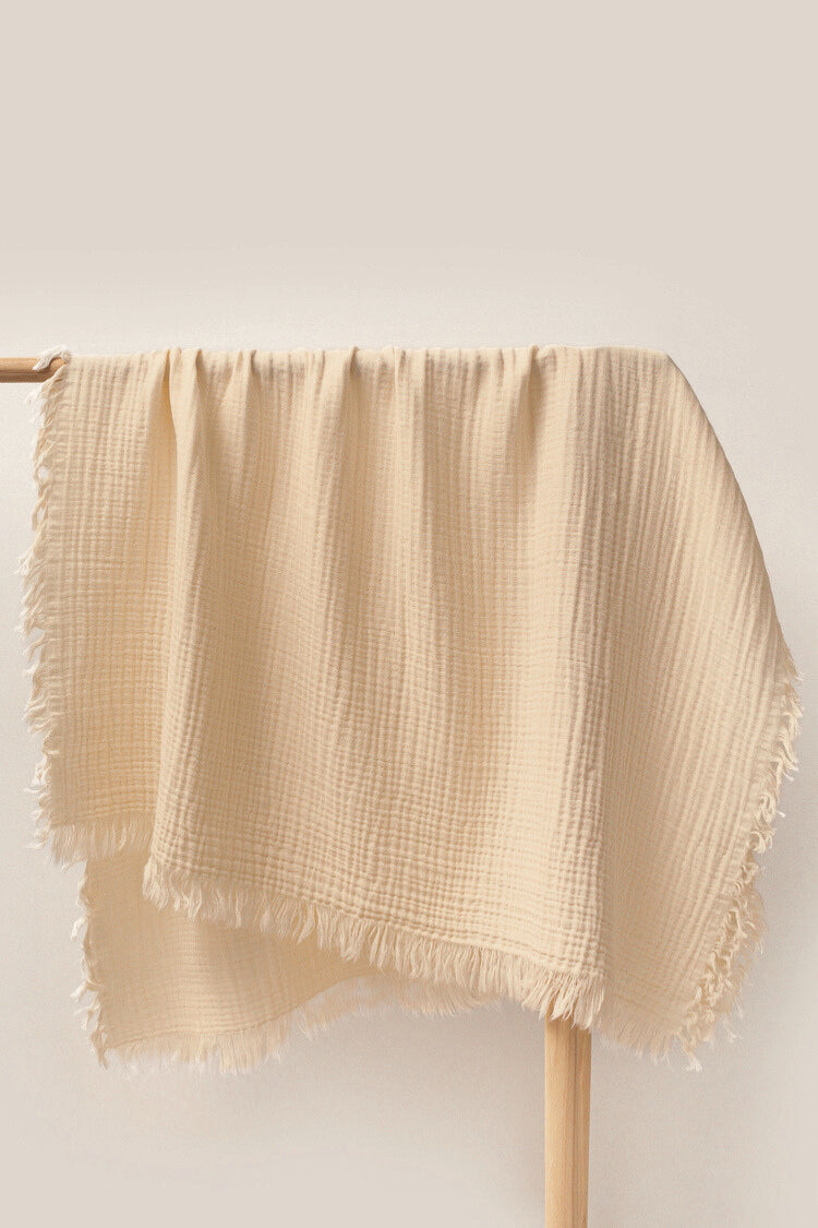 Naš četvoroslojni prekrivač izrađen je od 100% muslin pamuka i savršen je saputnik kroz tople dane. Lagane teksture, prozračan i nežan, pruža prijatnost bez grejanja, idealan za osetljivu bebinu kožu.