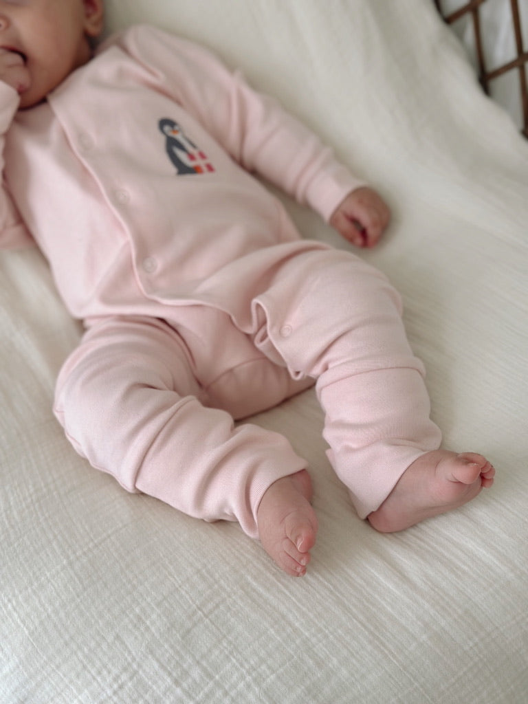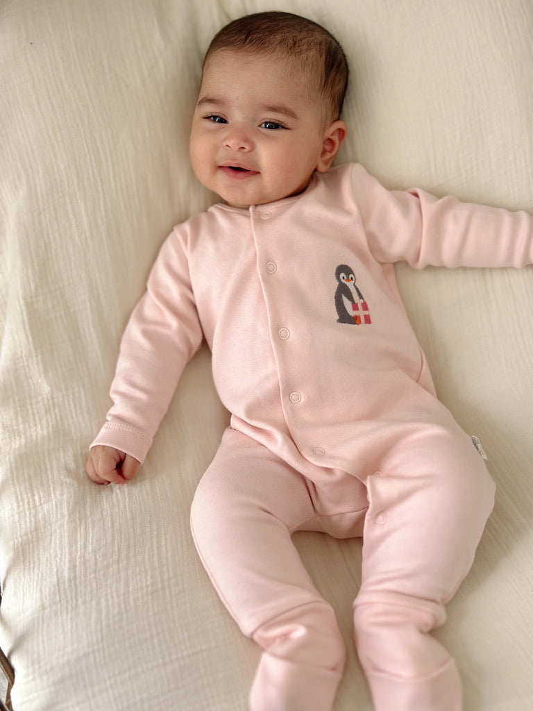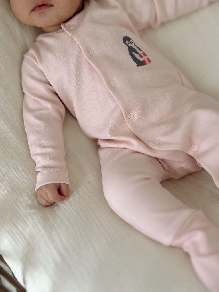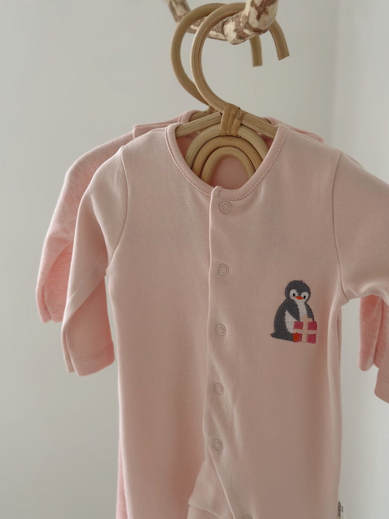 Kombinezon je ukrašen vezenim pingvinom, koji donosi dozu nežnosti i šarma svakom malom izgledu.
