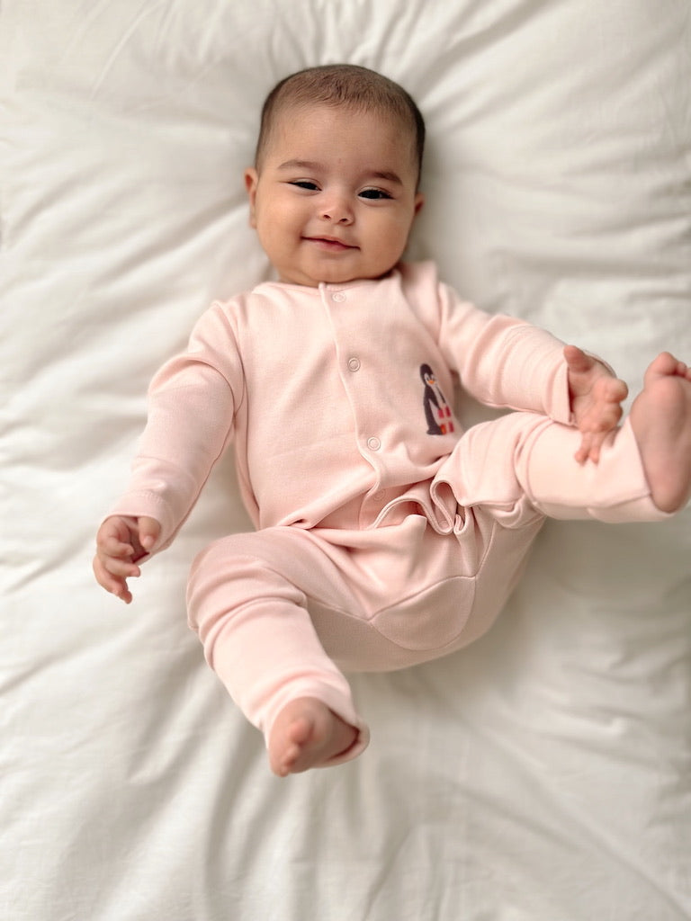 Naš pamučni kombinezon izrađen je od 100% prirodnog pamuka, prijatan i nežan prema osetljivoj bebinoj koži. Prozračan materijal obezbeđuje udobnost tokom celog dana, bilo da je beba u pokretu ili mirno spava.