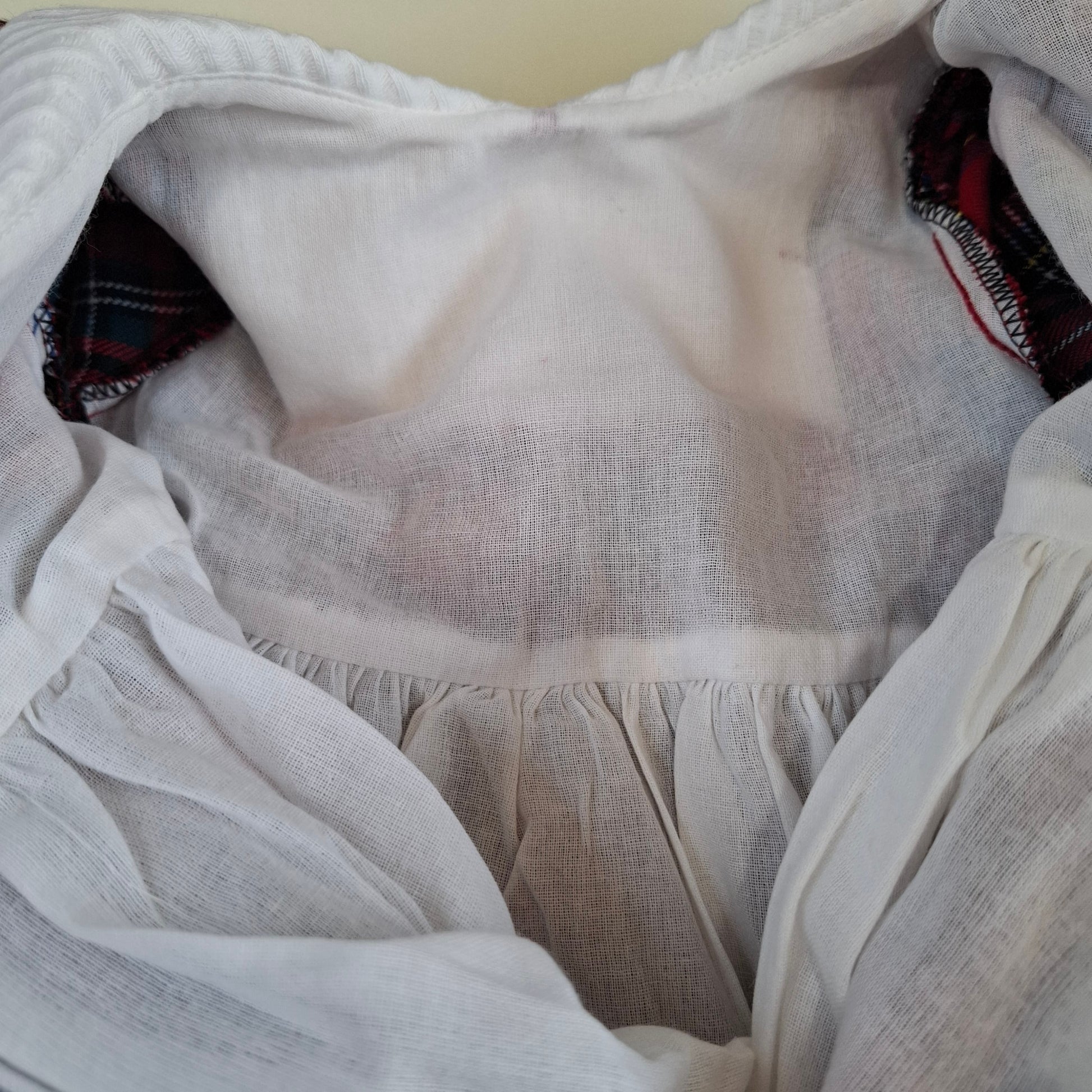 Praznična haljinica u klasičnom tartan dezenu, izrađena od prijatnog i mekog materijala, idealna za svečane trenutke tokom zime. Gornji deo ima ukrasni panel sa nežnim vertikalnim prošivima i kontrastnu kragnicu sa crvenim obrubom, što daje haljinici prepoznatljiv tradicionalni izgled.