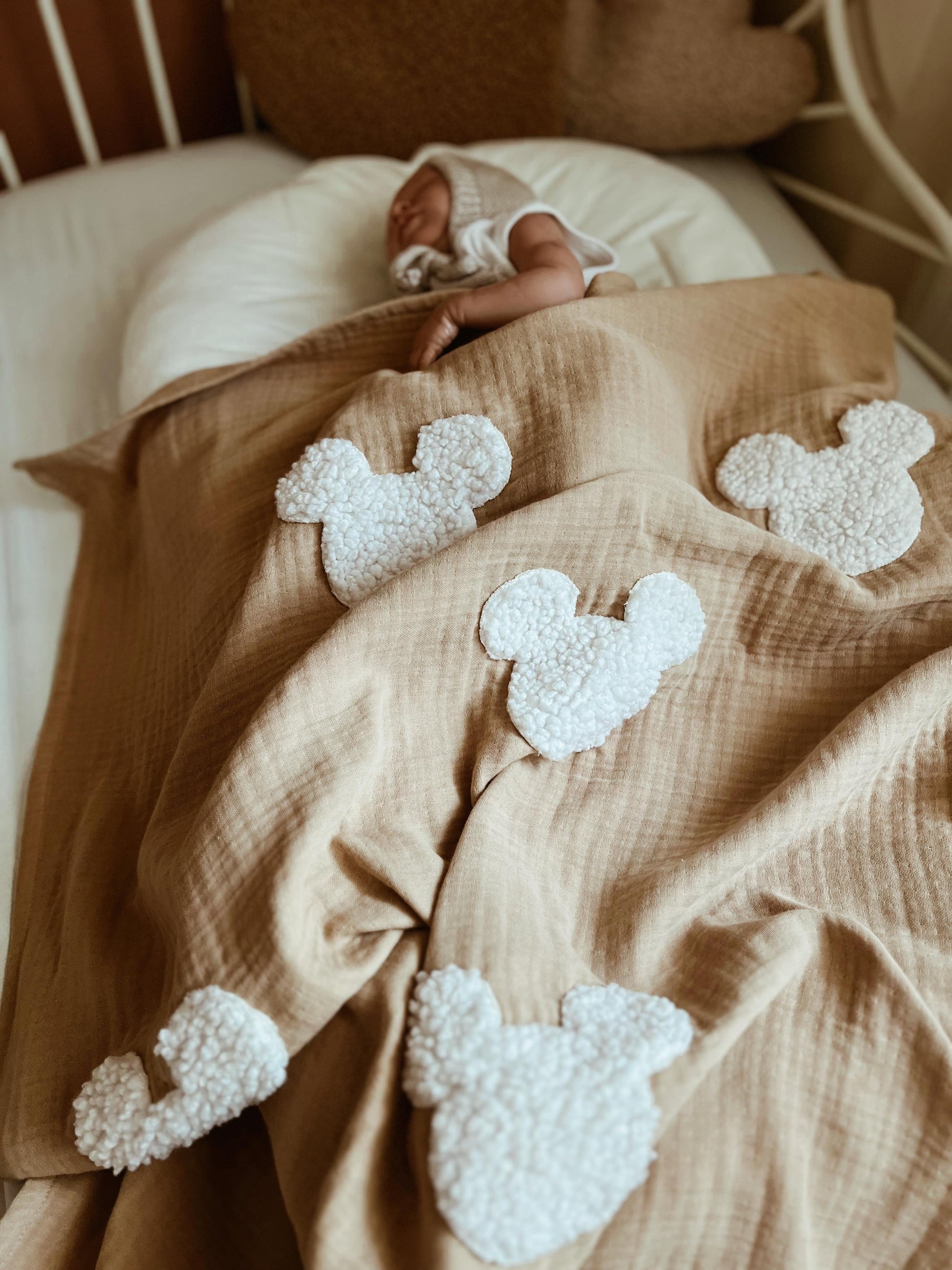 Izrađen od 100% pamuka, od četvoroslojnog muslin pamuka koje je lagano, prozračno i prijatno za bebinu kožu. Aplikacije su od teddy materijala, laser sečene i u potpunosti prošivene duž ivica, što obezbeđuje dugotrajnost i postojan oblik.