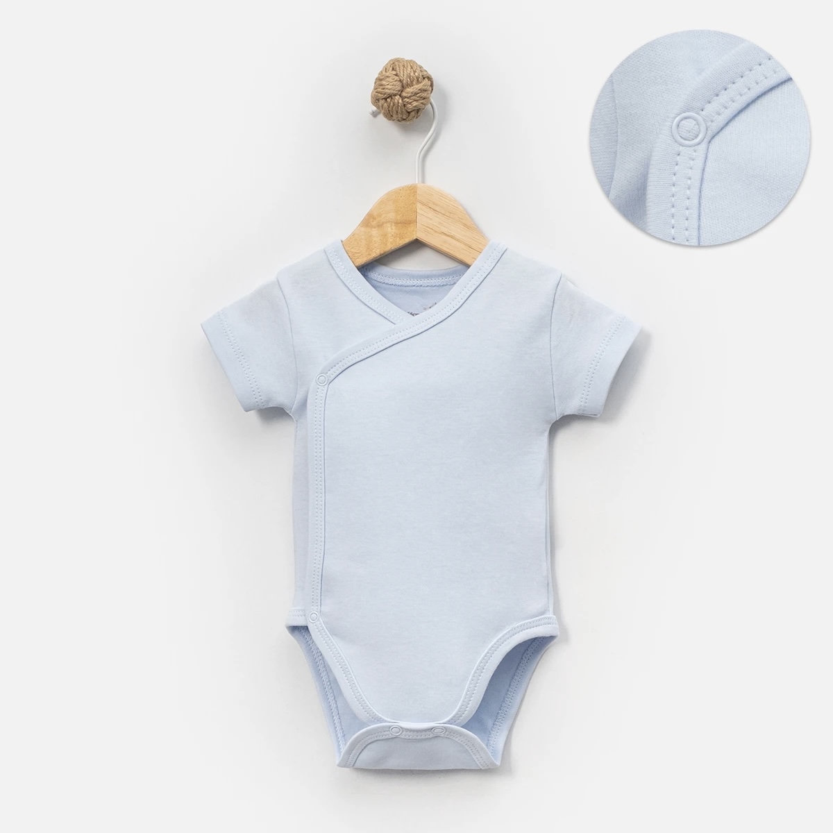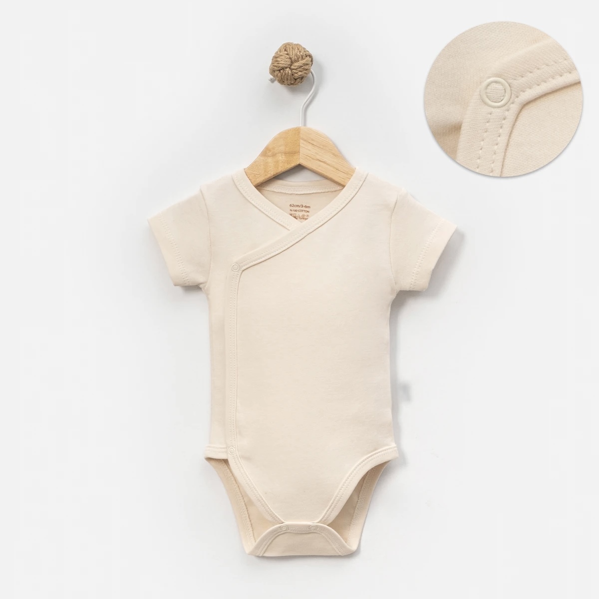 Preklopno kopčanje omogućava jednostavno presvlačenje, bez prevlačenja preko glave – što je posebno važno u prvim danima.