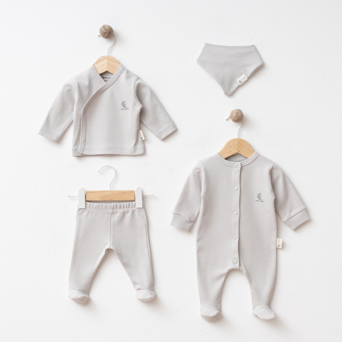 Set sadrži četiri dela. Moon organic set je biran za bebe koje tek upoznaju svet – i za mame koje žele da sve bude usklađeno, prijatno i praktično od samog početka. Komadi su nežni prema bebinoj koži, lako se oblače i idealni su za svaki dan, ali i za posebne trenutke poput izlaska iz porodilišta, poseta i fotografisanja.