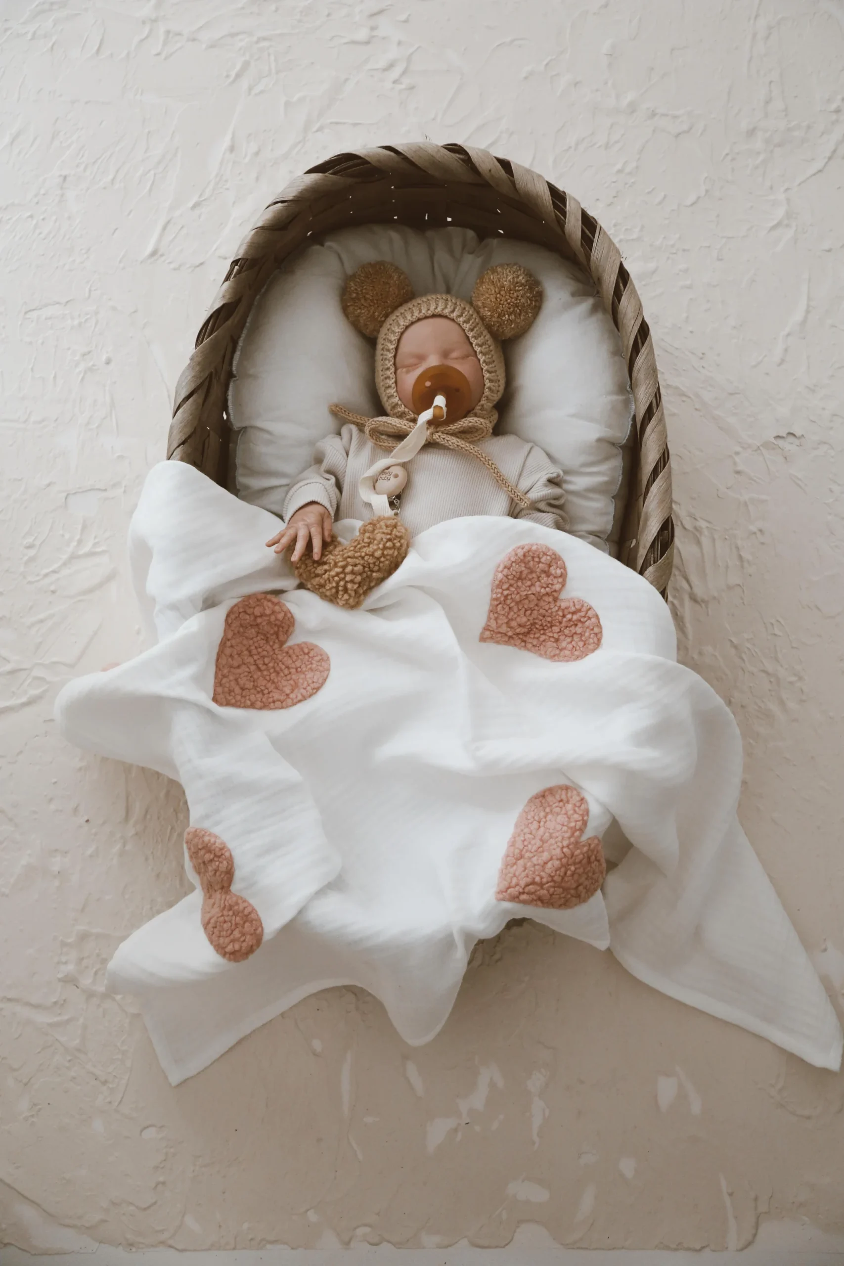 Teddy prekrivač izrađen od četvoroslojnog muslin pamuka koje je lagano, prozračno i prijatno za bebinu kožu.