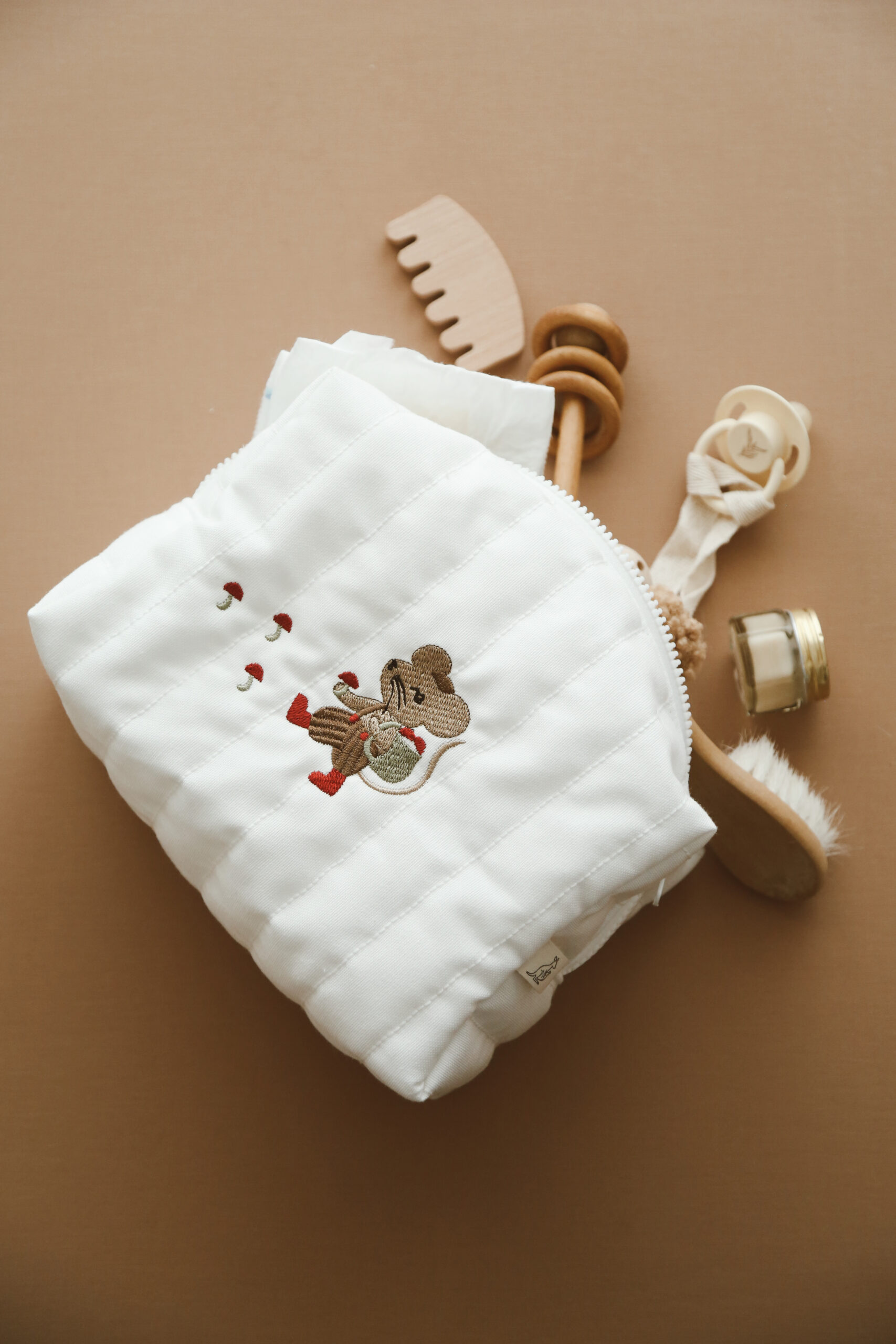 Osim što pomaže u organizaciji svih bebinih sitnica, ovaj model se izdvaja upravo po pažljivo rađenim vezovima koji mu daju poseban, topao izgled.